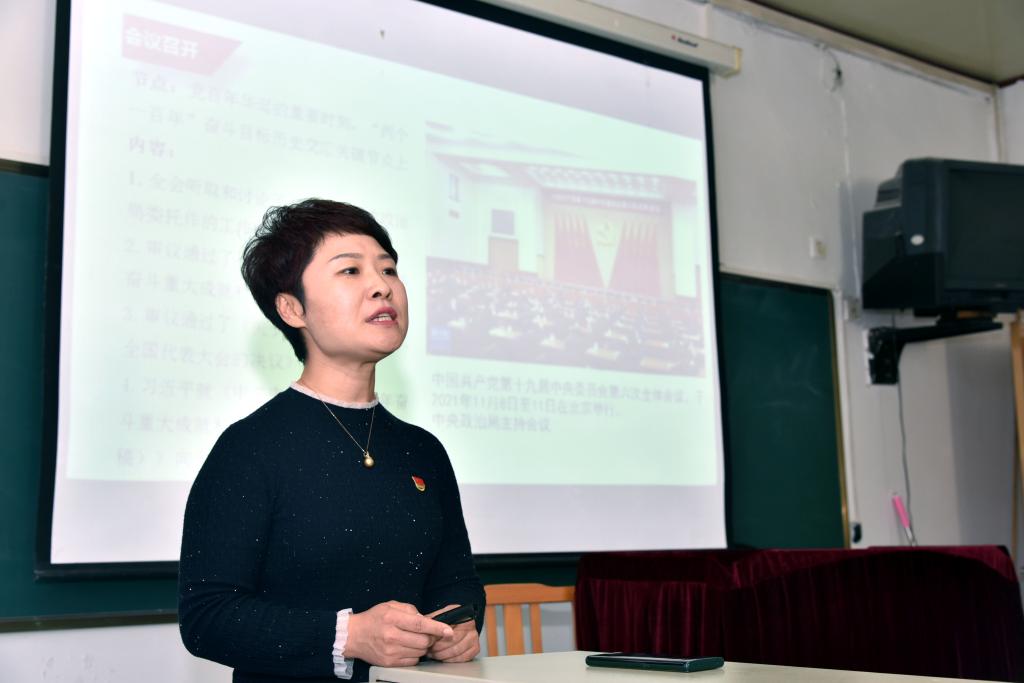 11月22日下午,学院召开全体教职工大会集体观看了十九届六中全会报告视频,党委书记刘会娟对十九届六中全会精神进行宣讲,深入浅出地解读了全会召开的背景、目的、内容、历史地位以及重大意义等,并对全体党员干部、师生员工提出了要求:一是要准确把握党的十九届六中全会的核心内容和精神实质。坚决把思想和行动高度统一到党的十九届六中全会精神上来,自觉坚守理想信念,筑牢思想基石。二是要大力弘扬伟大建党精神,始终不忘为民服务的宗旨,积极担当作为。以史为鉴、开创未来,创造无愧于党、无愧于人民、无愧于时代的新业绩。三是要从学习教育中汲取精神力量,努力转化为落实工作实效的积极行动。在履职尽责的过程中始终以“办好人民满意的教育”为目标,深入开展“我为群众办实事”实践活动,埋头苦干、勇毅前行。