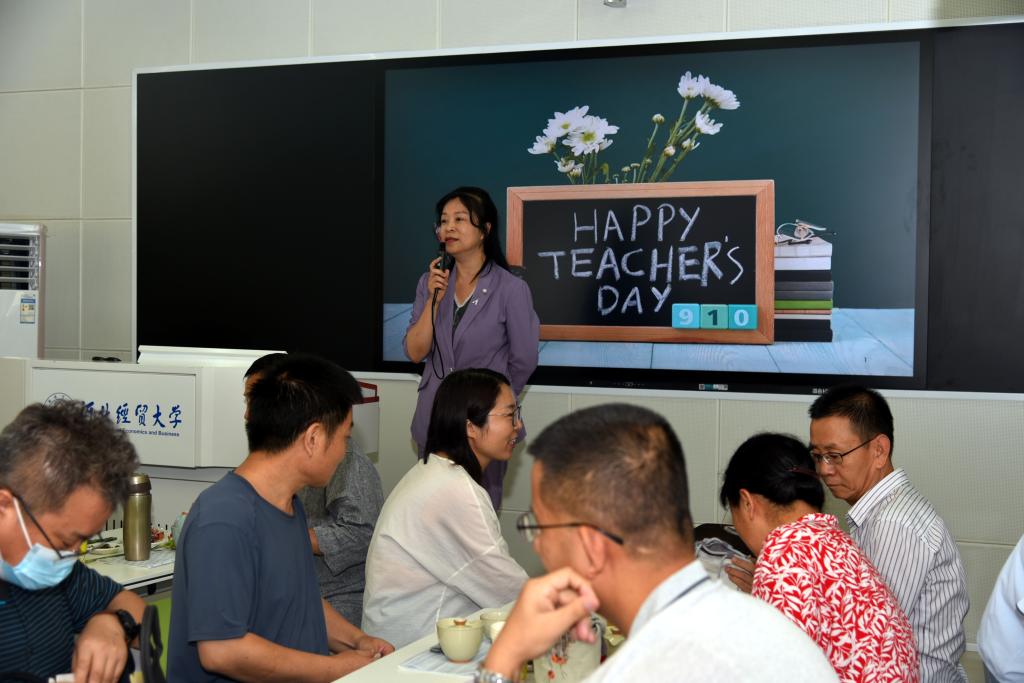 品一杯茶韵,愿师者芬芳。为庆祝第39个教师节,9月11日下午,黑料不打烊 全体教职员工齐聚一堂,在四教201开展了以“秋茶润心舒” 为主题的教师节茶话会。