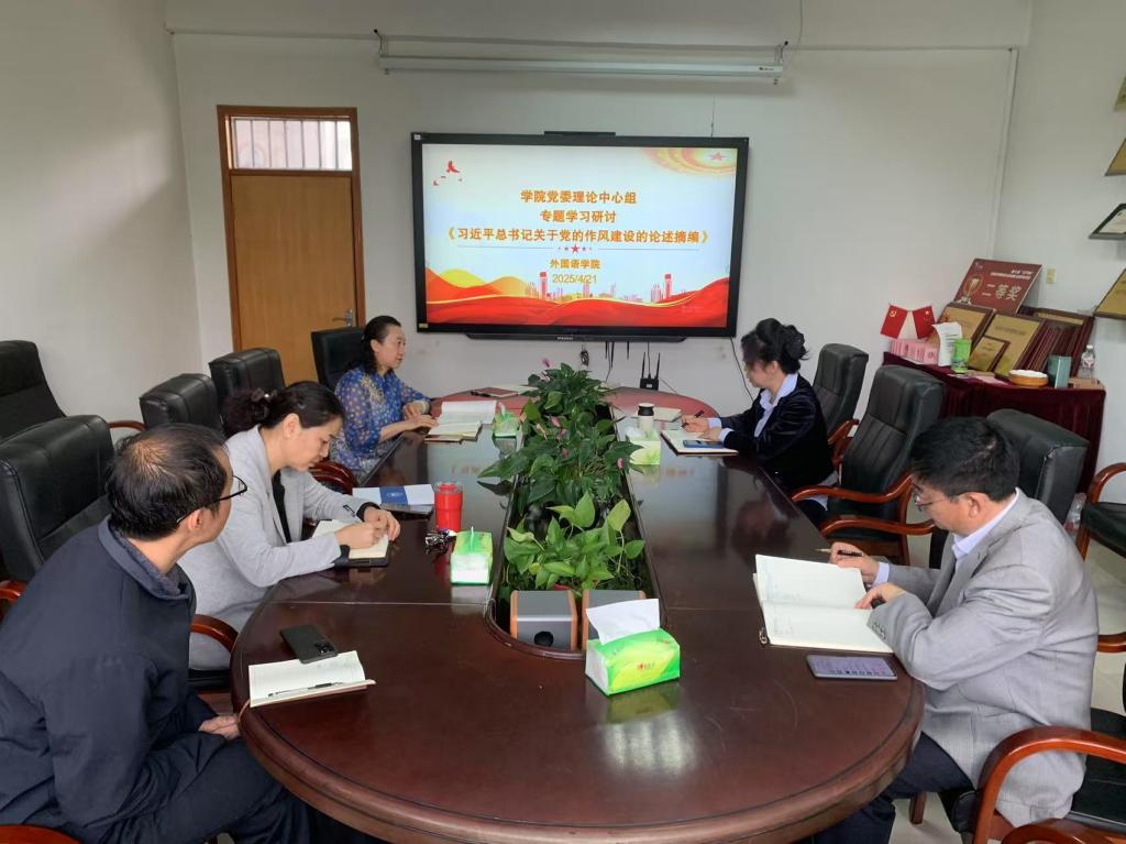 4月21日上午,学院党委理论学习中心组在学院会议室召开专题学习研讨会,深入学习习近平总书记关于加强党的作风建设的重要论述。会议由学院党委书记仇静莉主持,院长张润、党委副书记刘磊作重点发言,副院长张艳、杨清珍出席会议,相关部门负责人列席。