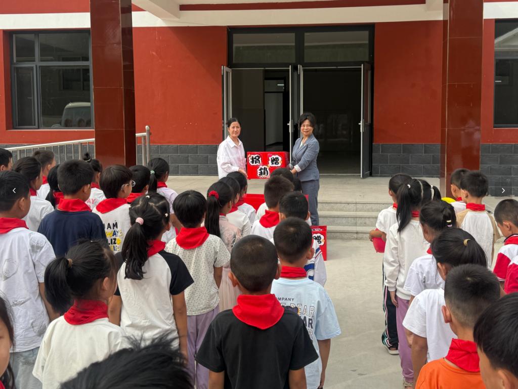 驻村书记张国宾、郭海燕老师、晓林镇中心学校书记杨胜儒等校领导及店头村小学全体师生参加。