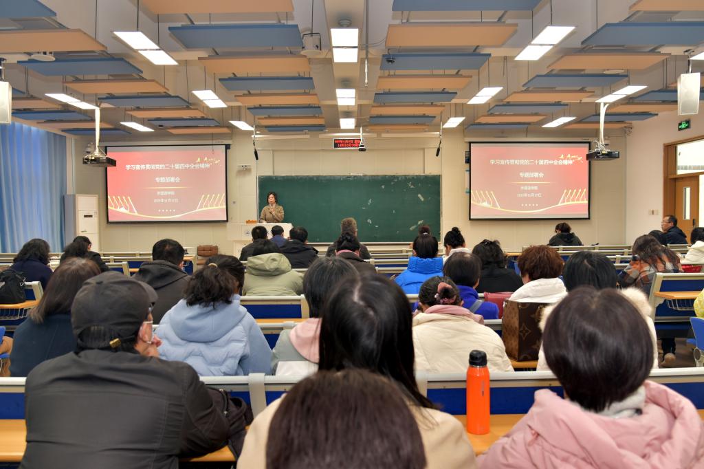 在B201教室召开全院教职工大会,专题部署学习宣传贯彻党的二十届四中全会精神。