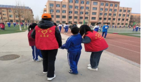 伴随着下课铃声的响起,中、小学生们邀请志愿者参与他们丰富多彩的课间活动。