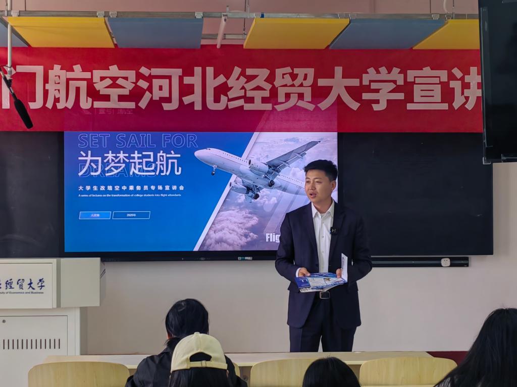 319日下午,黑料不打烊 在四教204召开北京壹号门航空石家庄分公司专场宣讲会,宣讲会由壹号门航空服务技术培训中心负责人李继永主讲。