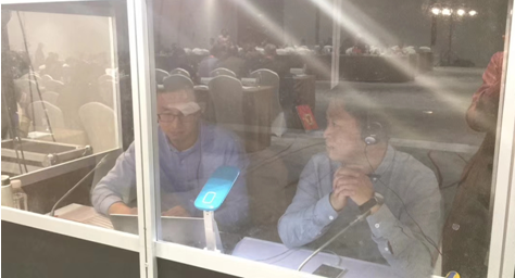 商利伟院长、韩智巍老师和郄新江老师为本次大会的同传翻译。会场上,老师们沉着冷静,反应敏捷。大健康产业合作对接会上,很多医学专业术语都生僻难懂,但诸位老师都进行了巧妙地处理,展现出了过硬的语言功底和专业素质。到场学习的各位口译专业的同学都深感受益匪浅。