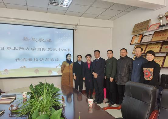 的人才培养与专业建设情况。国际教育学院党总支书记耿辉建和院长李钢分别介绍了我校留学生和对外合作交流情况。周晴处长介绍了日本北陆大学的地理环境、校园设施、专业优势以及留学生在北陆大学学习生活费用、奖学金、住宿条件等。双方在拓展交流项目、合作类型等方面进行了探讨并达成初步共识。