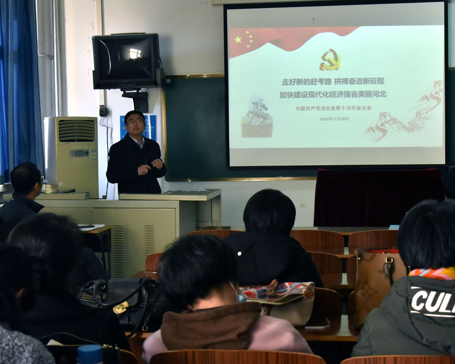 组织河北省第十次党代会精神宣讲会,深入学习贯彻党代会精神。院长张润作了专题宣讲,外院全体领导和教职工参加。