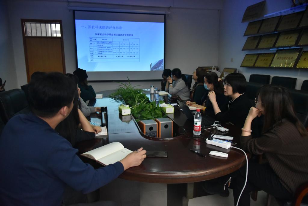 马彦丽博士结合自身多年申请国家社科课题的经验与体会,从国家社科的评分标准、选题、申请书填写和需要注意的问题几方面入手,与现场教师进行深入交流,解答疑惑,现场气氛热烈,教师们收获颇丰。