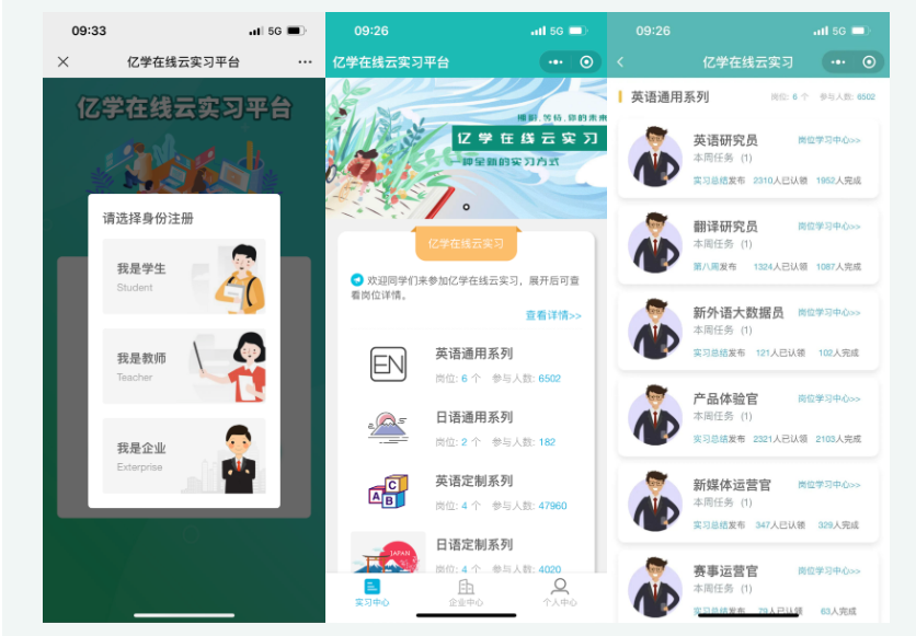 实习前,学院充分考虑了商务英语专业特点、培养目标,结合学生需求,积极与合作方沟通、协调,精心设计实习任务,安排专任教师督促和辅导。实习过程中,学生通过亿学在线云实习平台领取实习任务并上传任务成果,平台对参与云实习的同学进行一系列考核。按要求完成实习任务、通过审核的同学将获得由福建亿学颁发的相应岗位实习证书。
