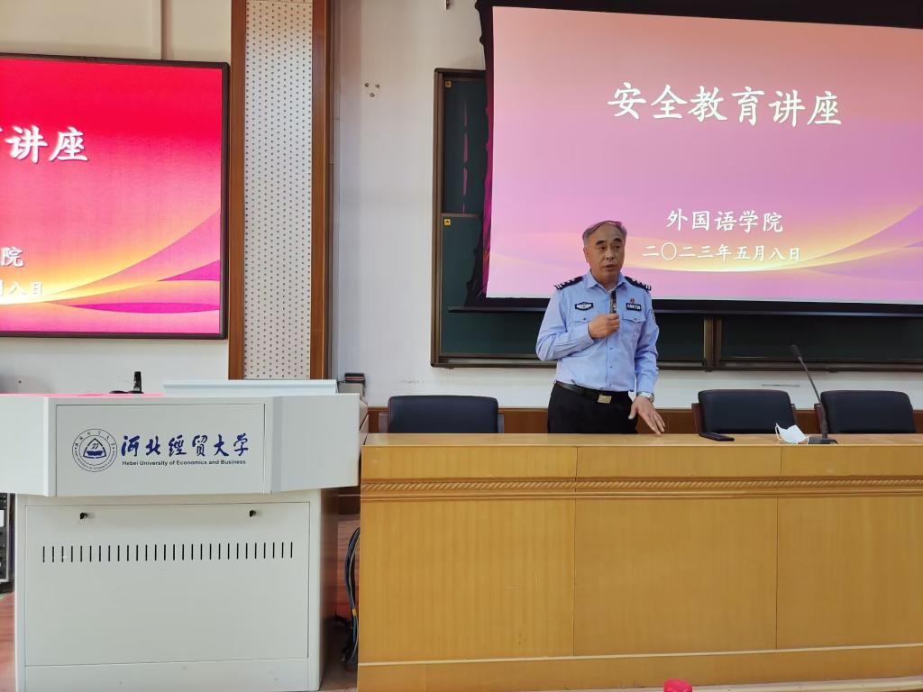 邀请五七路派出所警官在第三教学楼201室召开安全教育讲座,刘磊副书记及学院一、二年级全体同学到场参会。