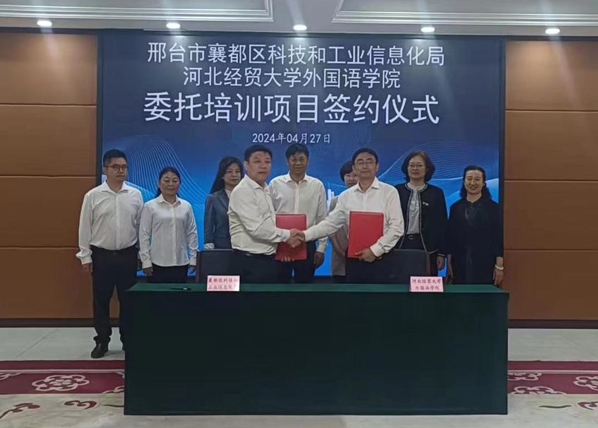 院长张润与襄都区科技和工业信息化局局长贾洪武签署了委托培训项目合作协议。