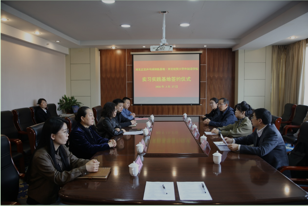 3月27日,河北经贸大学外国语学院与河北正定国家乒乓球训练基地合作签约仪式在正定国家乒乓球训练基地举行。学院党委书记仇静莉、院长张润、党委副书记刘磊及教师代表韦红茹等出席仪式。 仪式由基地党委书记张树杉主持,正定县副县长左小英出席并致辞。