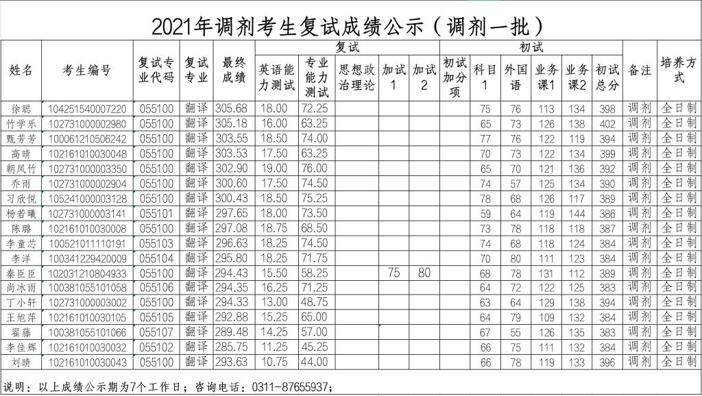 2021年调剂考生复试成绩公示(调剂一批).xls