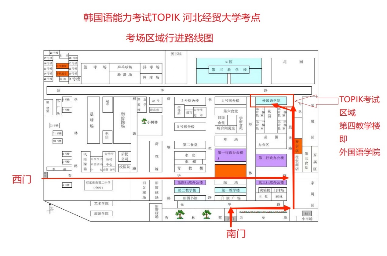 “西门”或者位于学府支路的“南门”进入。考生进入校园只限考试当日,其它时间不可以“熟悉考场”为由入校。陪考车辆及考生亲友不得进入校园。
