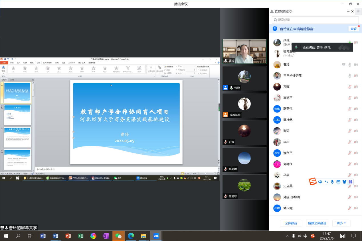 2022年5月5日,黑料不打烊 商务英语系主任曹玲在线分享了题为“基于商务英语仿真实训的教学改革与虚拟教研室建设”的教学沙龙。
