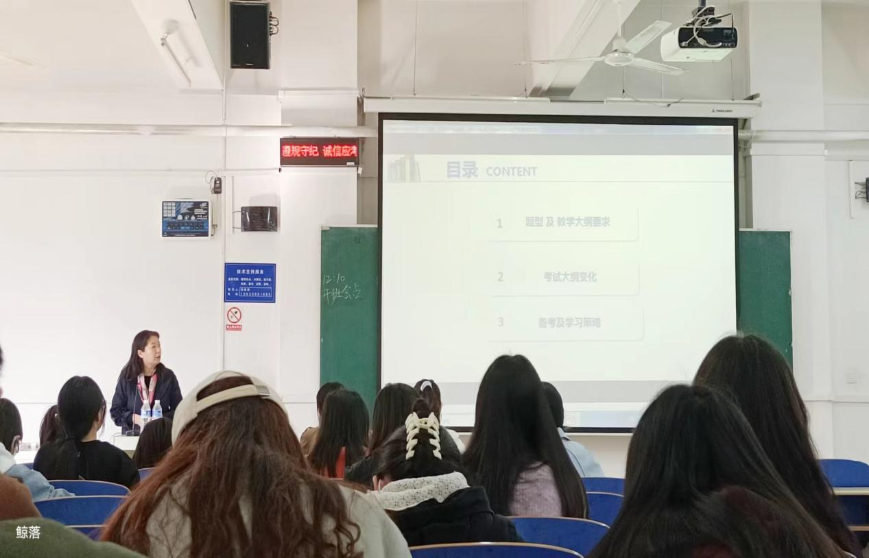 于3月13日下午召开英语专业四级考试指导交流会。本次交流会由学校本科教学督导组专家、专业竞赛资深指导教师史立英副教授主讲,2021级英语和商务英语专业全体学生参加。