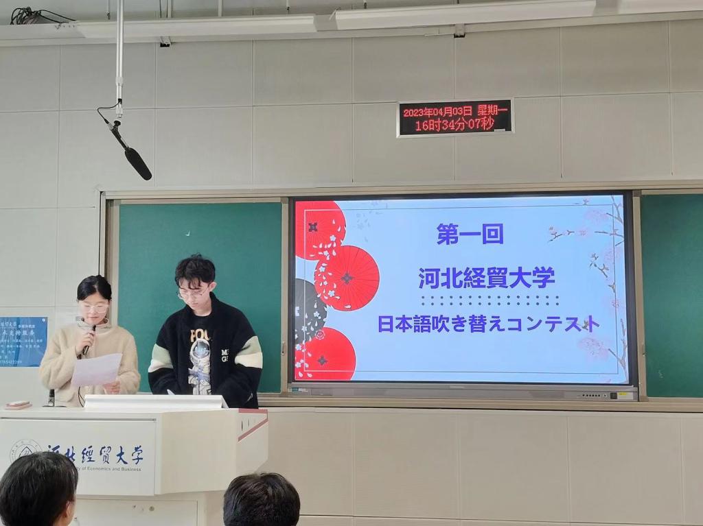 日语系举办第一届日语配音大赛。日语系大一、大二和大三的17个团队参加了本次大赛。日语系主任王玉秀和蒋艳君、连永平、李岩、线培雁、郭莉莉等教师以及外教担任评委。