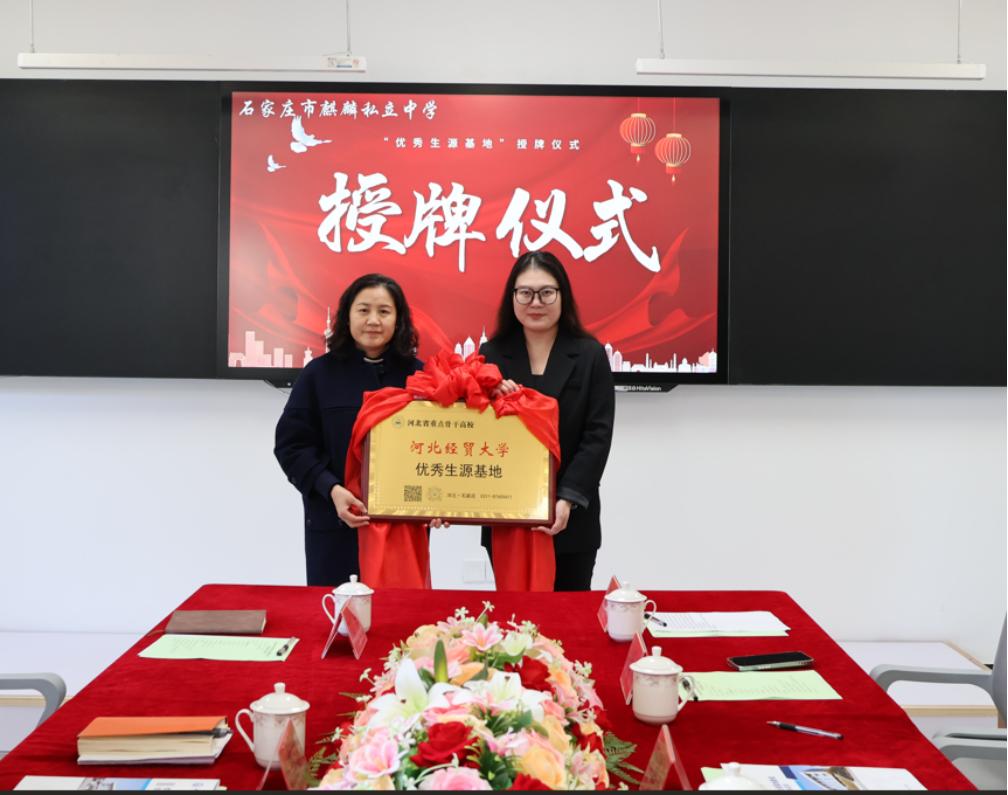 党委书记仇静莉、副书记刘磊、副院长张艳与石家庄市麒麟私立中学校长侯喜君、副校长张明月、顾雁宏、齐爱岭、胡海船及部分师生参加了授牌仪式。