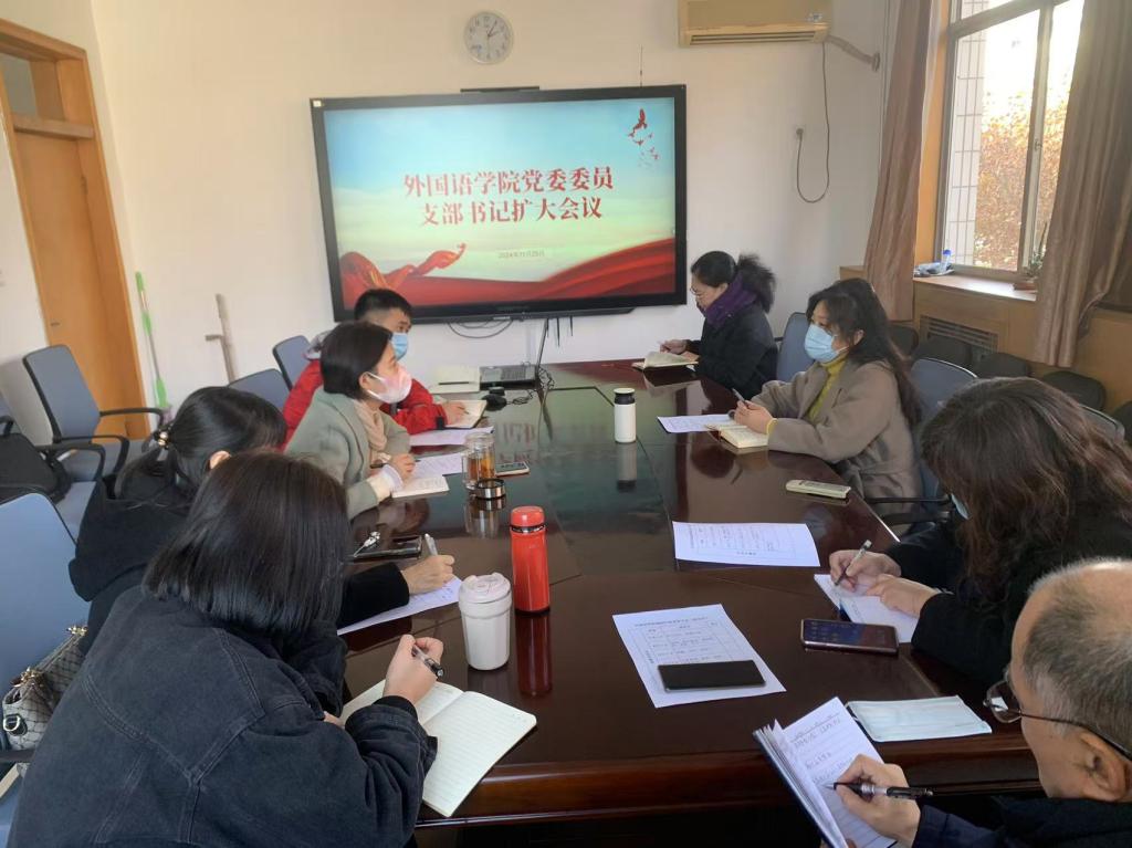 2024年11月25日下午,黑料不打烊 在外语部会议室召开了党委委员和支部书记扩大会议。会议由学院党委书记仇静莉主持,党委委员程智淇、甄伟红,行政支部书记田晓光,第一教师支部书记宋晓娜,第二教师支部支委杨锐,第三教师支部书记李丽洁,第二学生支部书记康文霞,以及第三学生支部书记付磊参加会议