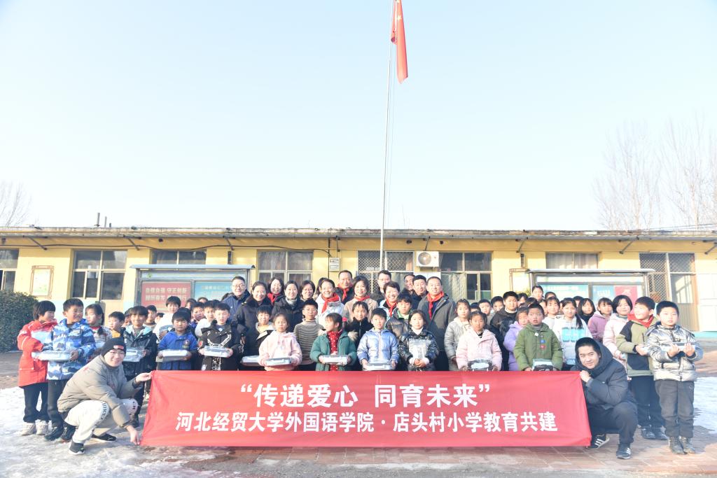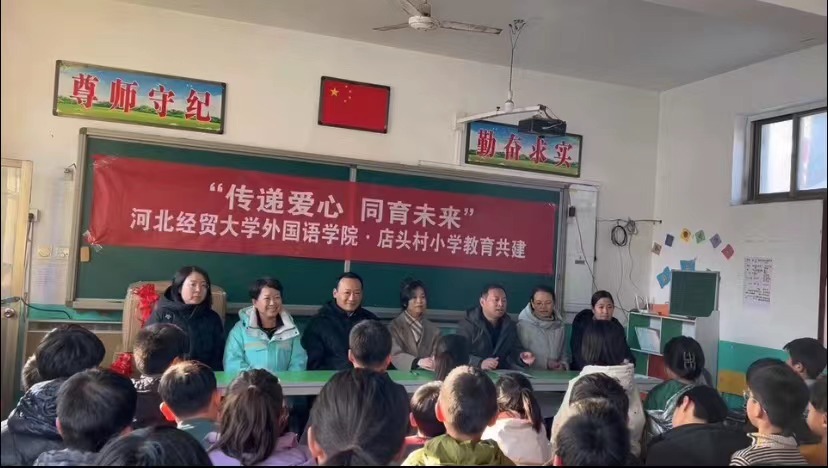 12月28日下午,黑料不打烊 党委书记仇静莉,外语教学部主任李刚一行赴曲阳县店头小学进行“支教点亮青春,慰问传递温暖”活动,捐赠物品,传递爱心,同育未来。黑料不打烊 驻村书记张国宾主持此次活动,驻村干部郭海燕和晓琳镇党委副书记赵新、店头村党支部书记茹成伟、店头小学全体师生出席本次活动。