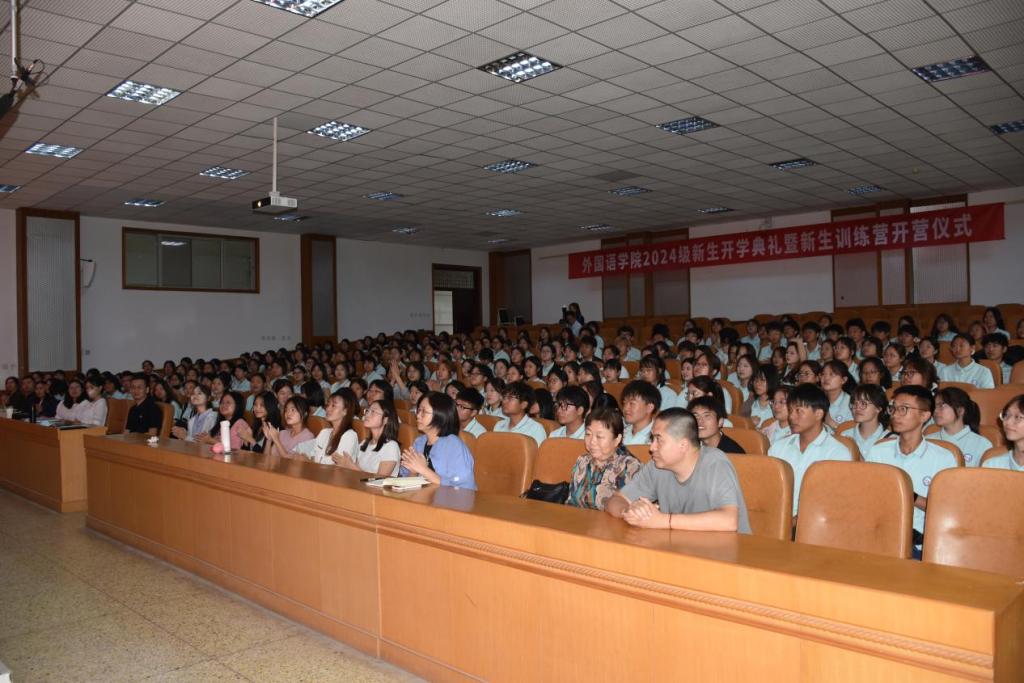 在C教201举办2024级新生开学典礼暨2024年新生训练营开营仪式。学院领导班子、各系负责人、全体行政与辅导员老师和2024级新生参加,大会由学院党委副书记刘磊主持。