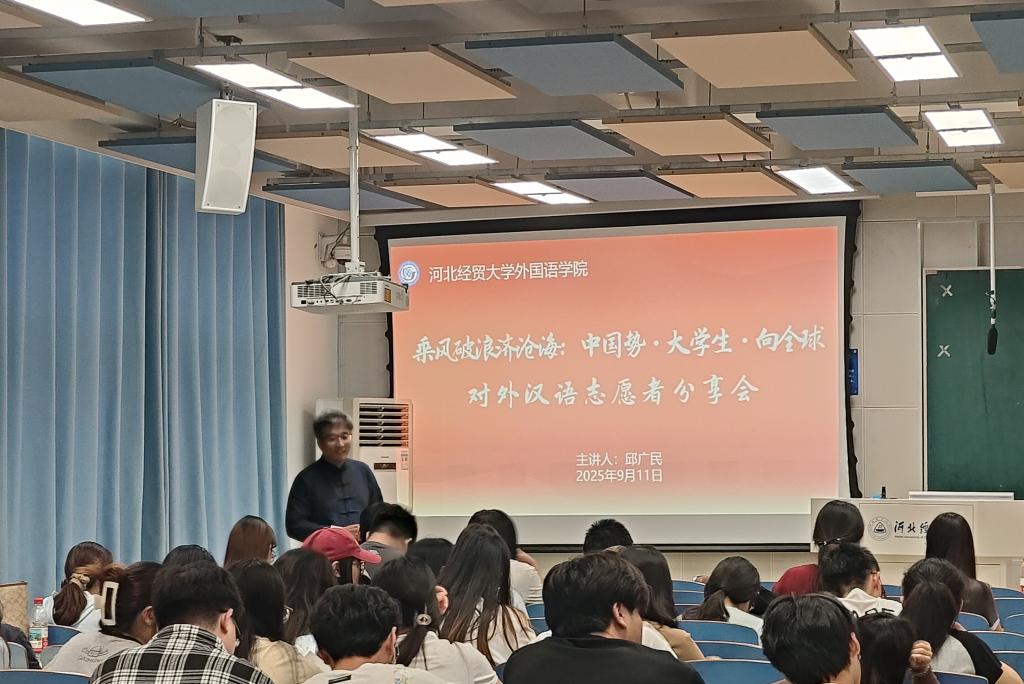 成功举办“乘风破浪济沧海:中国势·大学生·向全球”对外汉语志愿者分享会。活动特邀尼泊尔孔子学院邱广民老师担任主讲,学院党委书记仇静莉、副书记刘磊、团委书记、毕业班辅导员及2022级全体学生参加。