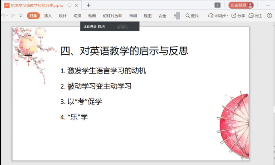 陈瑛老师首先介绍了尼泊尔汉语教学的现状,然后结合自己国内外的教学实践,分析了中尼两国学生在外语学习中的不同特点,并在学习动机、以评促学等方面提出了促进学生进行语言学习的思考。