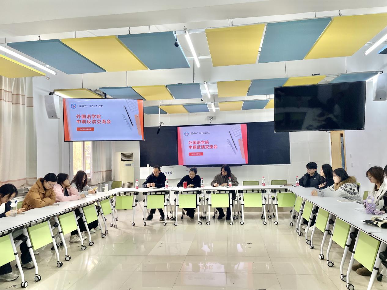 圆桌π——中期反馈交流会”。学院副书记刘磊、副院长张艳、教务办公室工作人员、本科生与研究生各班学生代表参加了活动,活动由张艳主持。